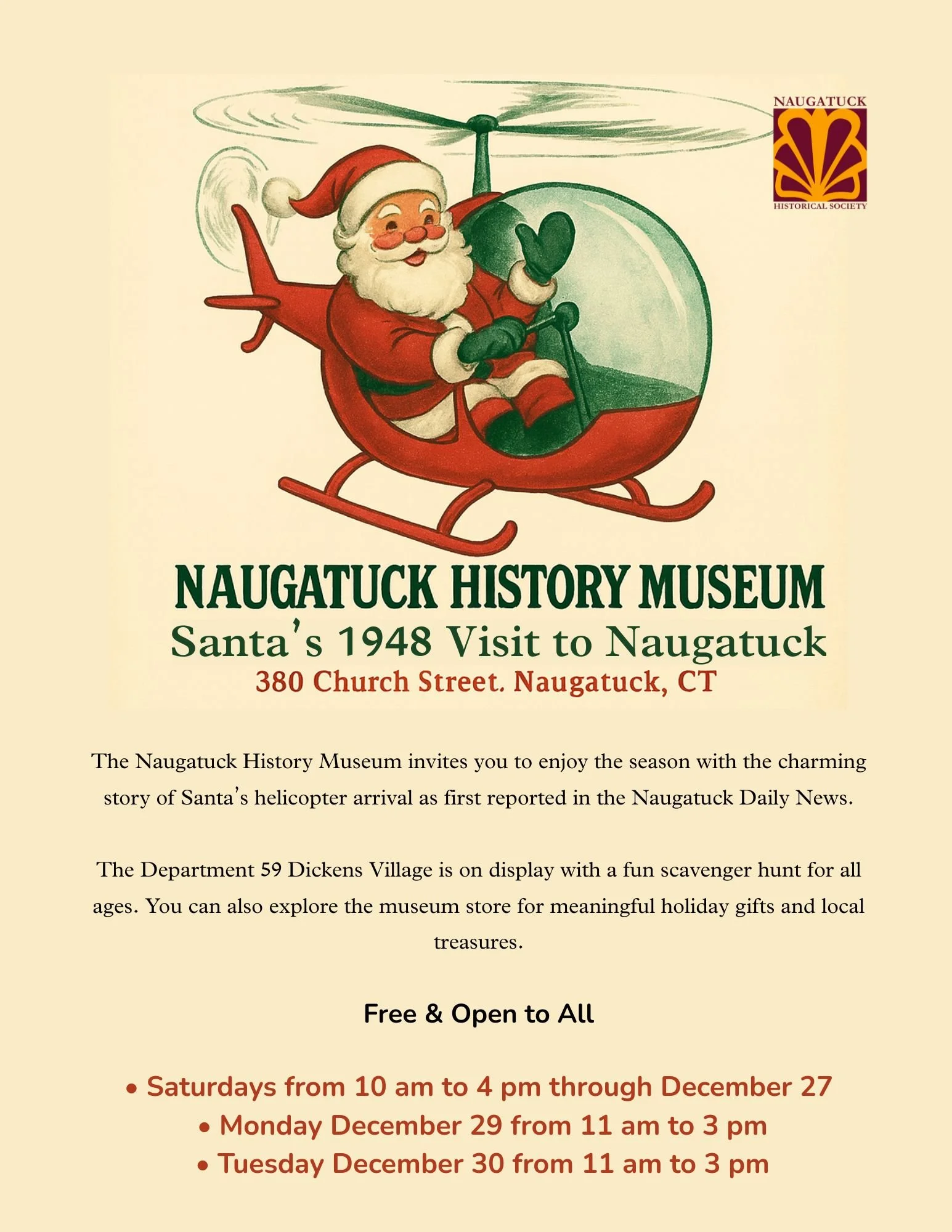 The Naugatuck History Museum is currently open and welcoming visitors. Please note that we will be closing temporarily in January and February 2026 to prepare new exhibits and programs for our America 250 celebration. We will reopen on March 20, 2026, with fresh displays and experiences that highlight our community’s history.