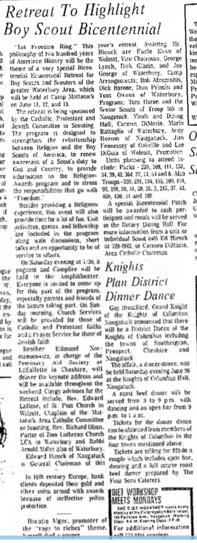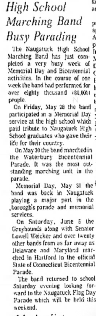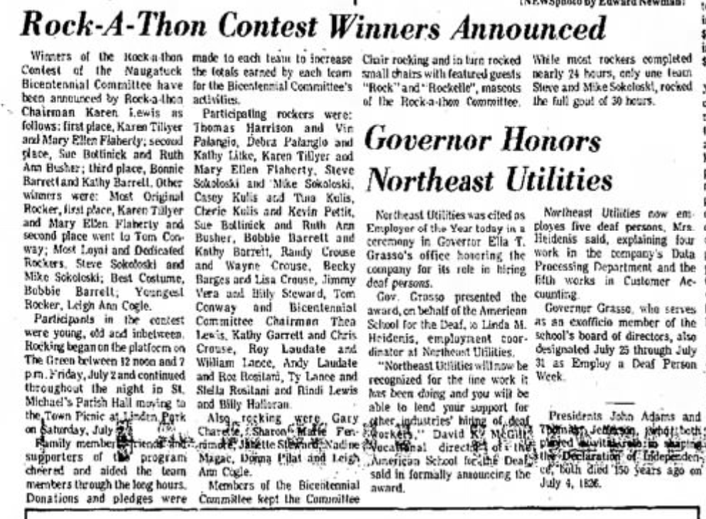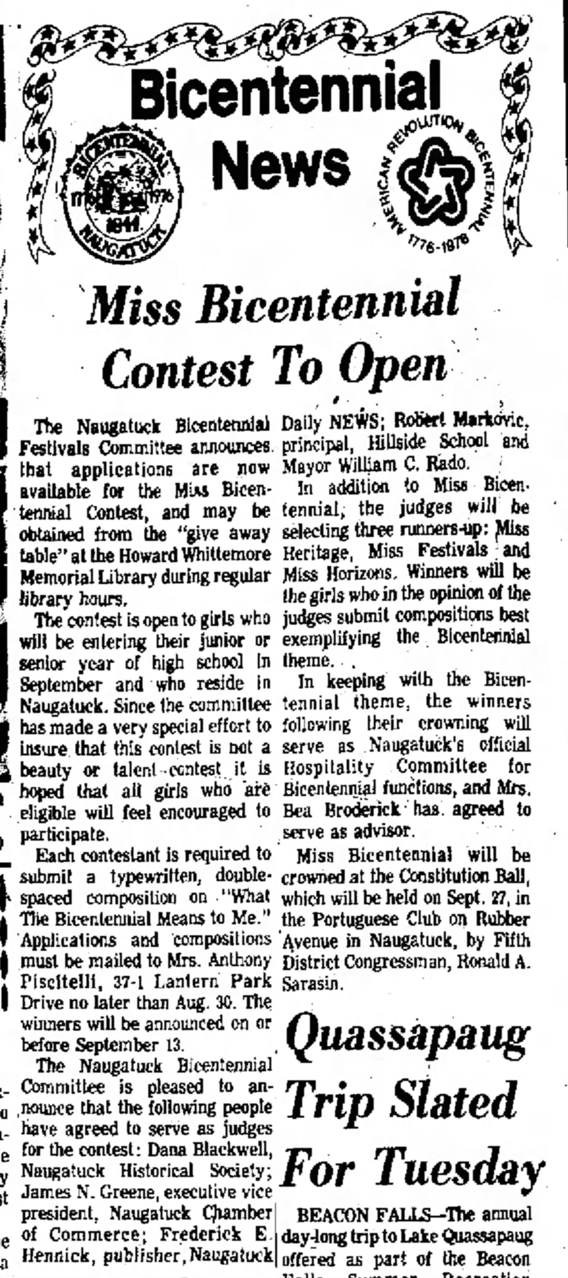 “She had served as secretary of the Bicentennial Committee for the Borough of Naugatuck and was a former Republican deputy registrar of voters.”