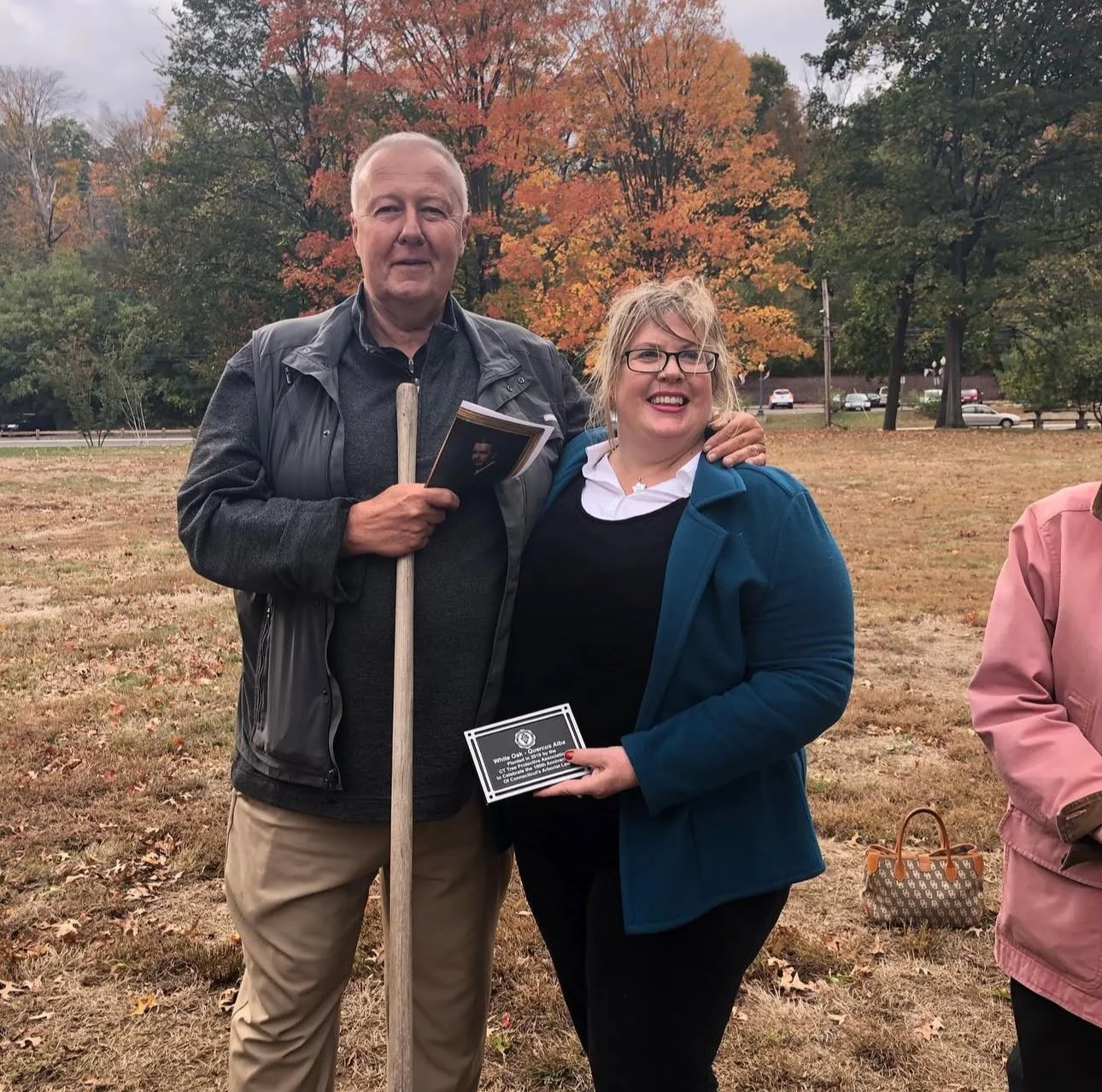 October 18, 2019, the Tuttle House grounds got a new resident! The Connecticut Tree Protective Association donated a beautiful white oak to the town to honor the 100th anniversary of the passage of Connecticut’s Arborist law. Evabeth Kloc worked closely with the association, the Historical Society & the town to choose a perfect spot on the Tuttle House lawn for tree.