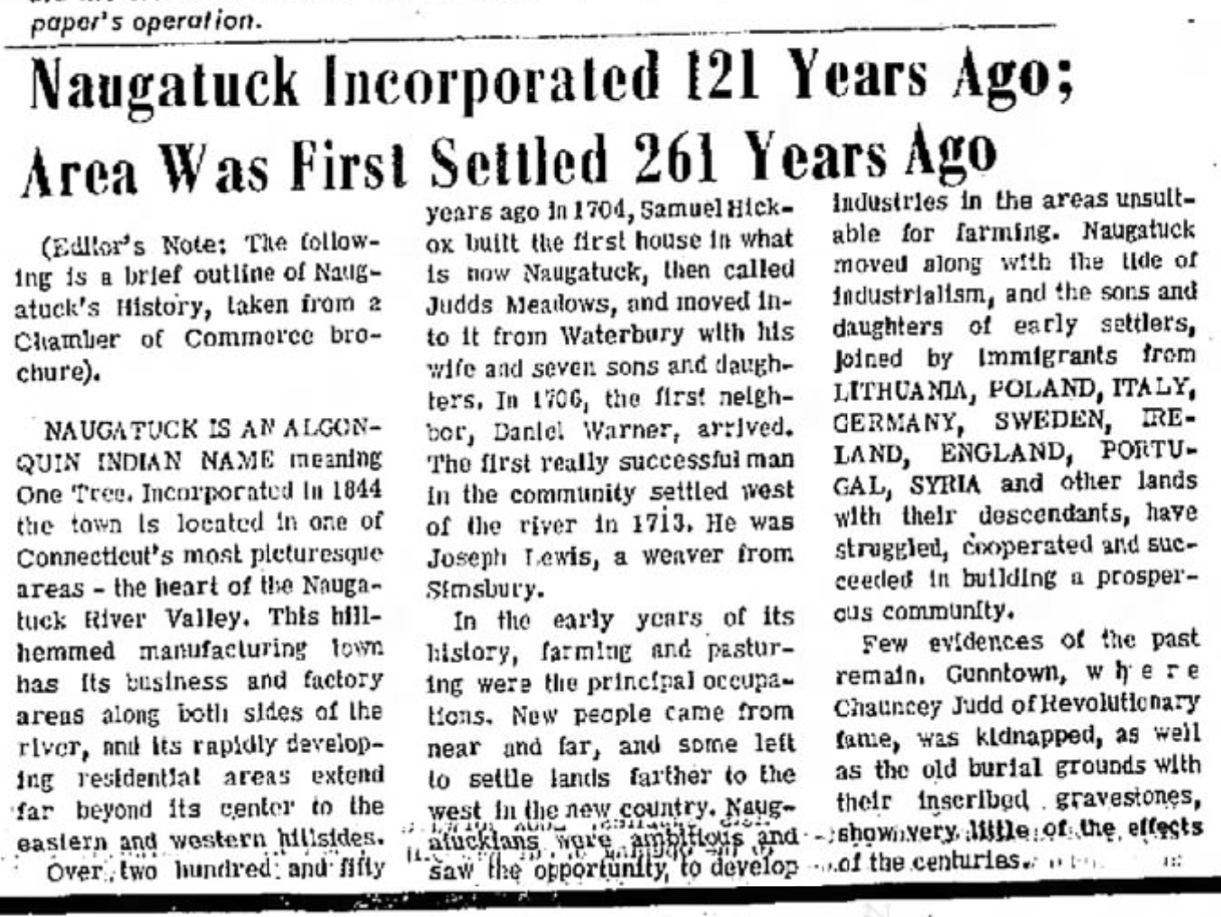 The course of Naugatuck history was well on its way.