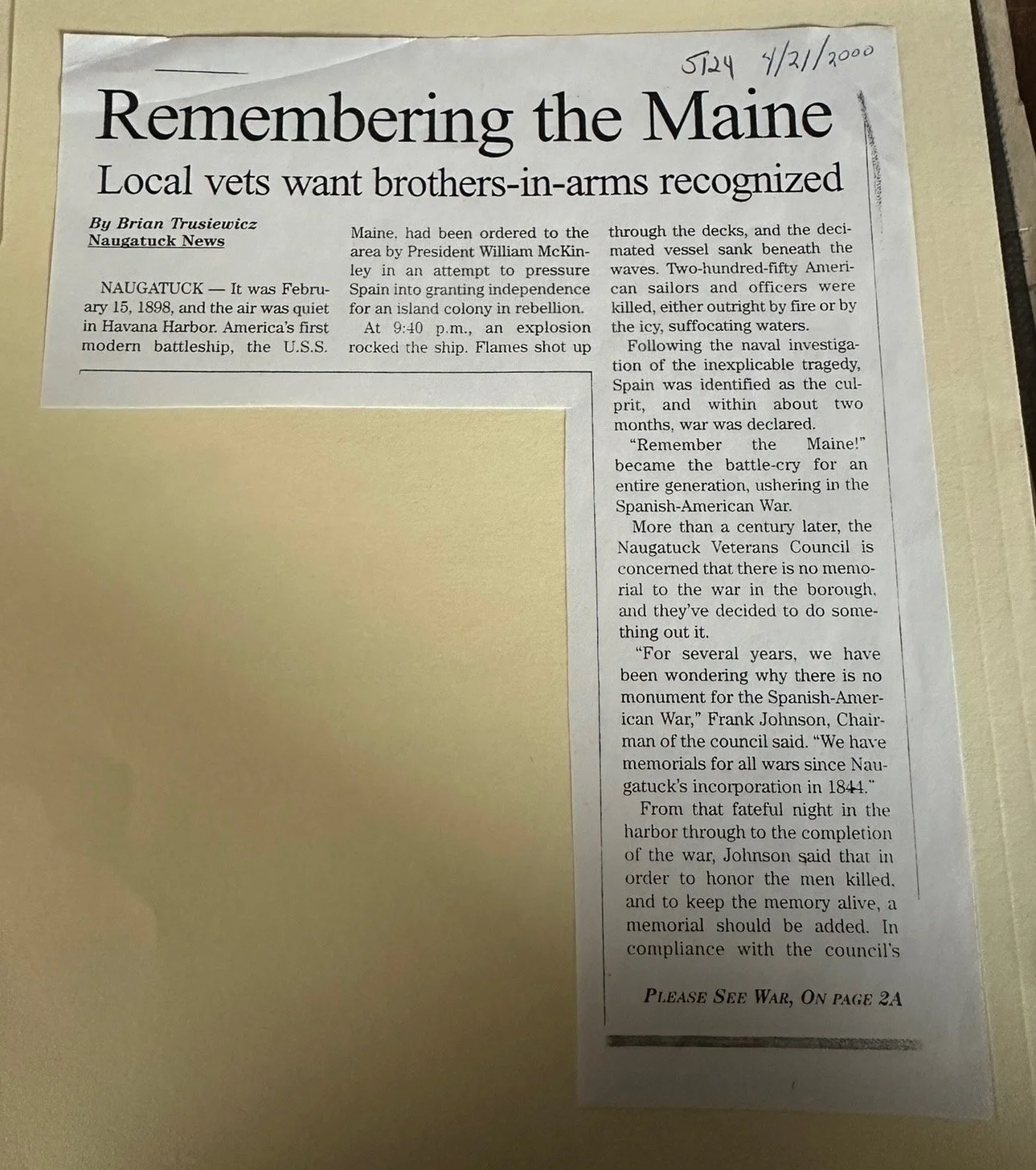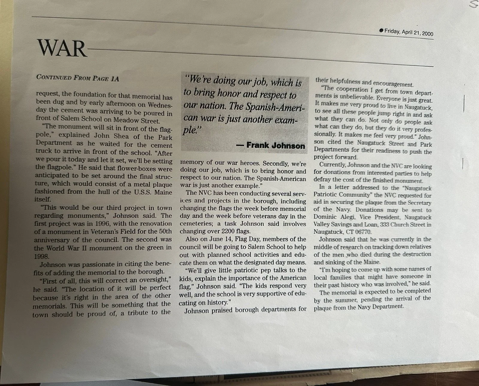 Mr. Louis Reale, Veterans of Foreign Wars, honored Spanish American war dead by calling attention to heroism of this colorful volunteer army on the anniversary of the sinking of the U.S.S. Maine.