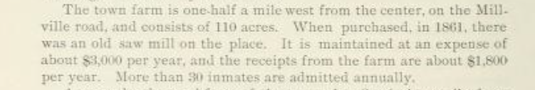 The Town Farm operated as both an almshouse and a working farm. It provided housing and basic care for residents who could not support themselves, including the elderly and indigent, while also functioning as an agricultural operation that helped supply food and offset operating costs. Contemporary accounts noted that it cost about $3,000 annually to maintain, while receipts from farm operations averaged approximately $1,800 per year. More than thirty residents were admitted each year, reflecting the institution’s important role in the community.