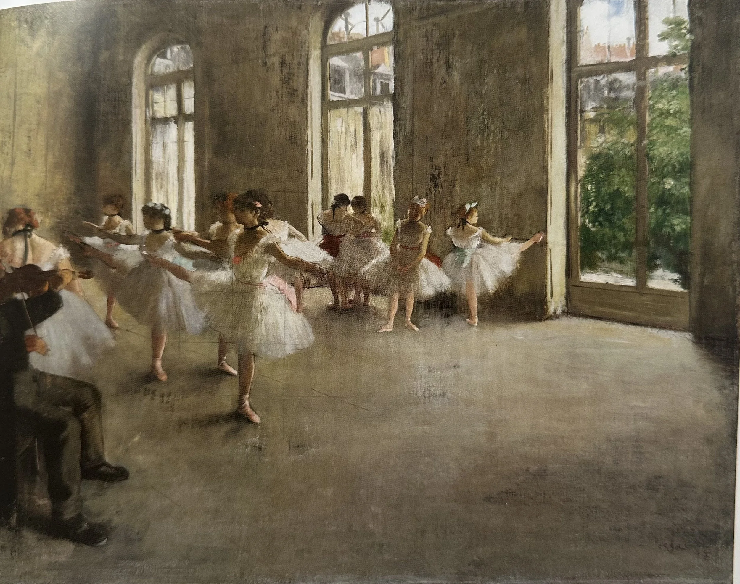 While Degas’s subjects once shocked polite society in Paris, they did not deter Harris. He was particularly drawn to images of dancers, especially scenes showing rehearsals and moments of rest between performances. These works revealed both the discipline required to create beauty and the exhaustion endured by young women with limited opportunities. Harris, who was active in social-service work in Naugatuck, would have recognized the darker implications present in these scenes, even as he appreciated their color, composition, and sense of movement.